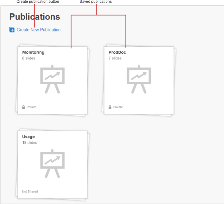 スライドショーを作成すると、 パブリケーション ページにスライドショーが表示されます。 以下のスクリーンショットは、 パブリケーション ページの例を示しています。