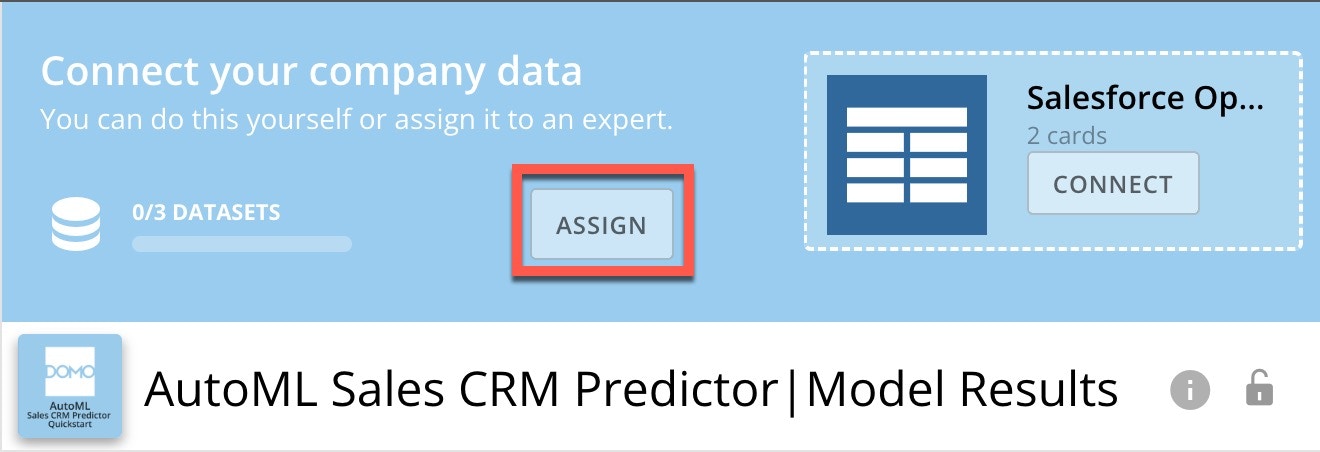 (Optional) Select Assign to assign the setup for this app to another person. A dialog displays with an assignment message that you can send as-is or customize. Search for and select your organization’s data specialist, customize the message if you want to, and then select Send. The person you assign setup to receives an email notification about the assignment.