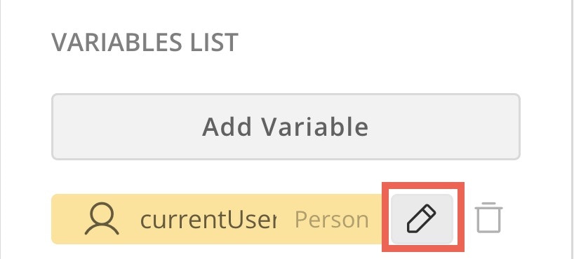Follow these steps to edit a variable in the Workflows variables tab:- Go to the Workflow variables tab in the canvas left navigation.
