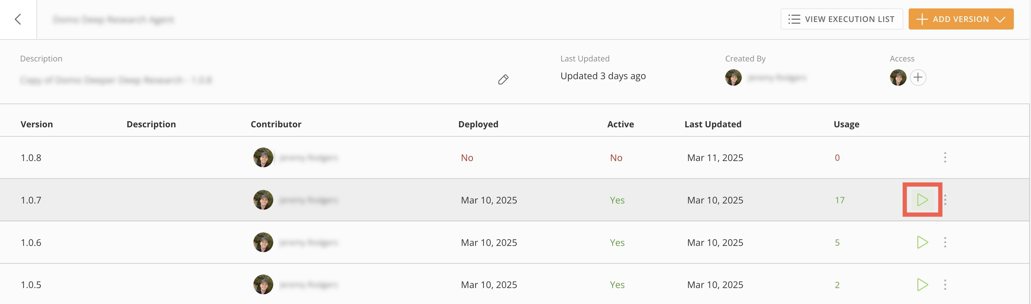 Action menu (three vertical dots icon) > Deploy.