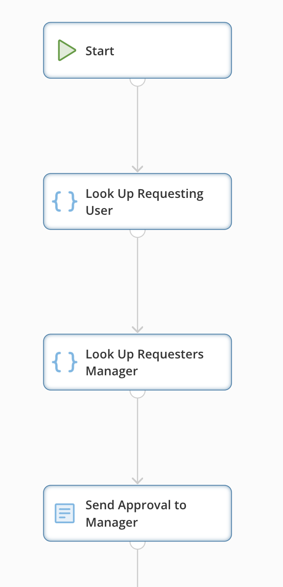 Your workflow is a series of shapes—representing actions—connected by flows (or lines). After adding shapes to your canvas, you can drag them around to change the visual design of your workflow. Dragging a shape also drags any flows attached to it. Add a shape to the canvas by selecting