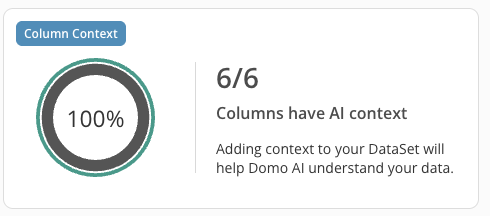 - DataSet Context — DataSet Context includes a description and a list of objects for Domo AI to identify and use when looking at your DataSet. Learn more.