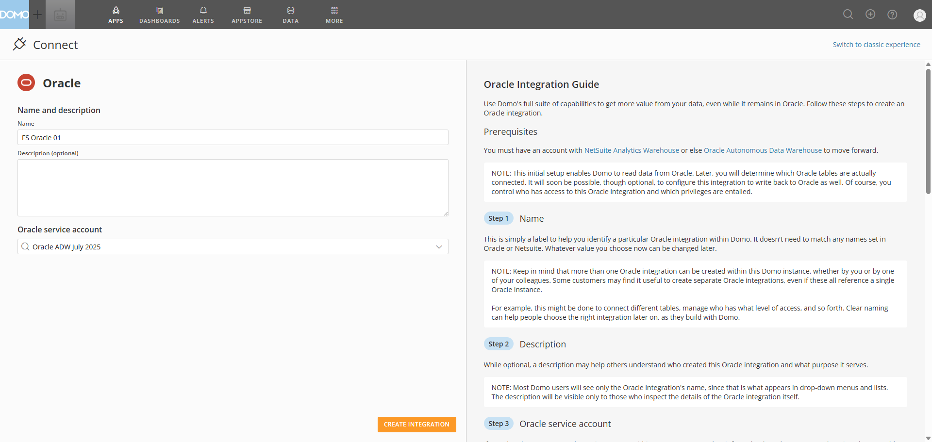 This name helps you identify an Oracle integration within Domo and doesn’t need to match any names already set in Oracle or Netsuite. You can change the name of your integration at any time.