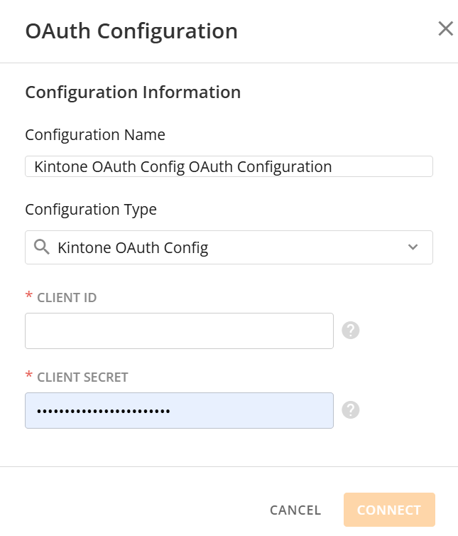 - Select the Kintone OAuth Config Configuration Type from the drop-down list.