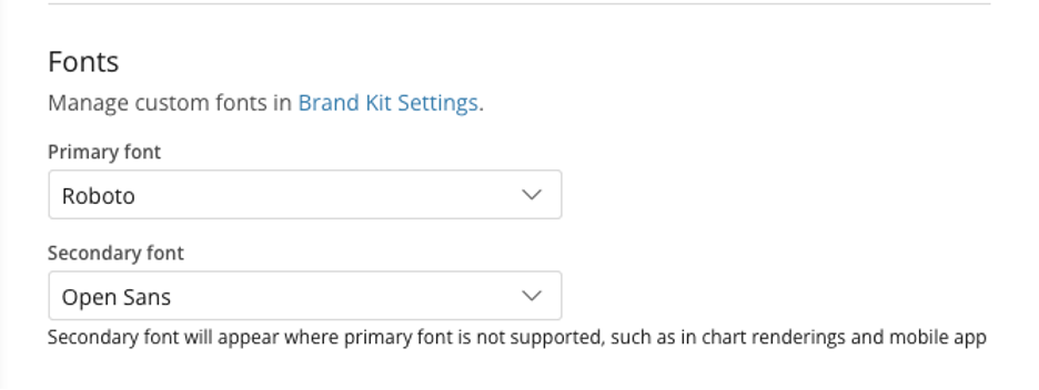 - Fonts — Choose a primary font for your managed instance. If you select a custom font, you must also select a secondary font. Learn more about fonts, including custom-acquired fonts.
