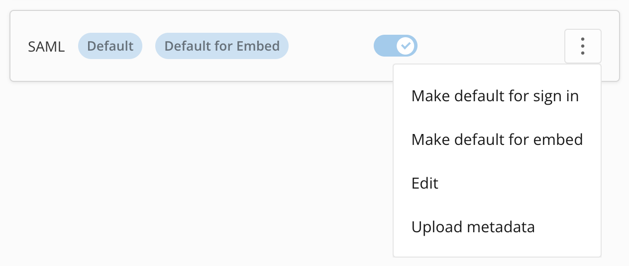 If SAML SSO hasn’t been configured previously, select Configure for the SAML item. You can then choose Upload Metadata or Manual Entry. Learn more about each option below.