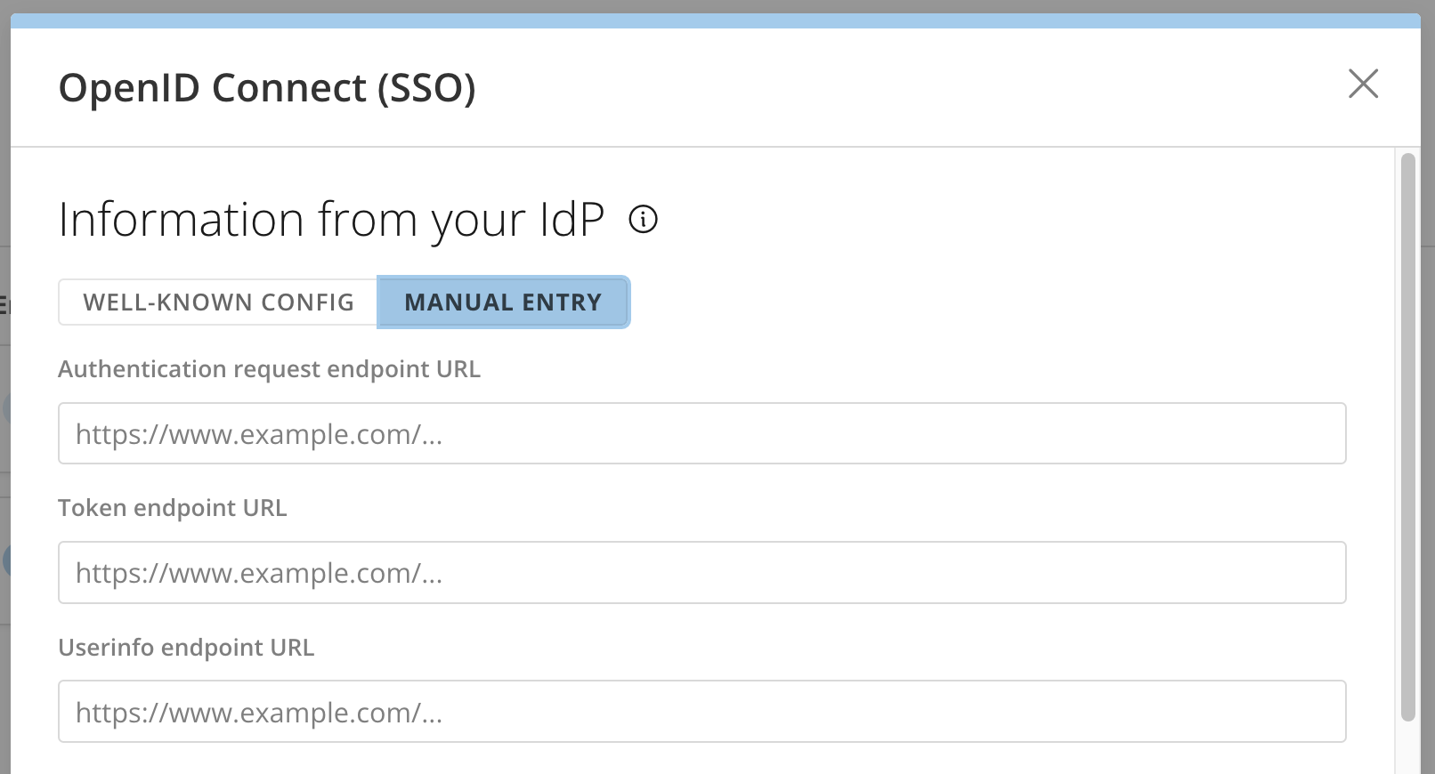 If your IdP doesn’t provide a well-known config, you’ll need to manually enter the information that would otherwise be provided by the well-known config.-