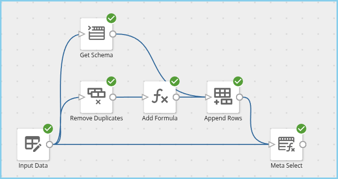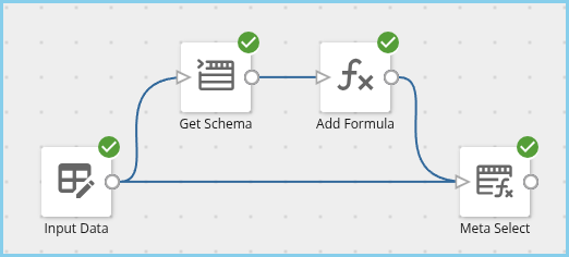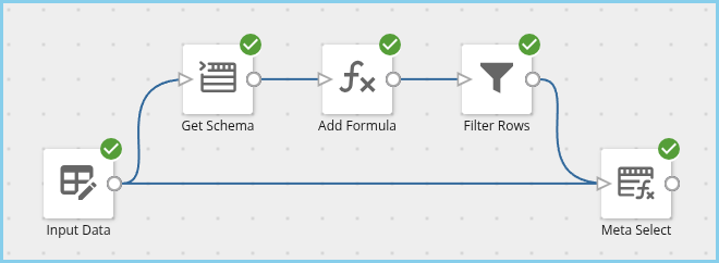 The first example of Meta Select’s capabilities will demonstrate it doing nothing at all. Rather, we will use the Get Schema tile to select every column from our original input unchanged.