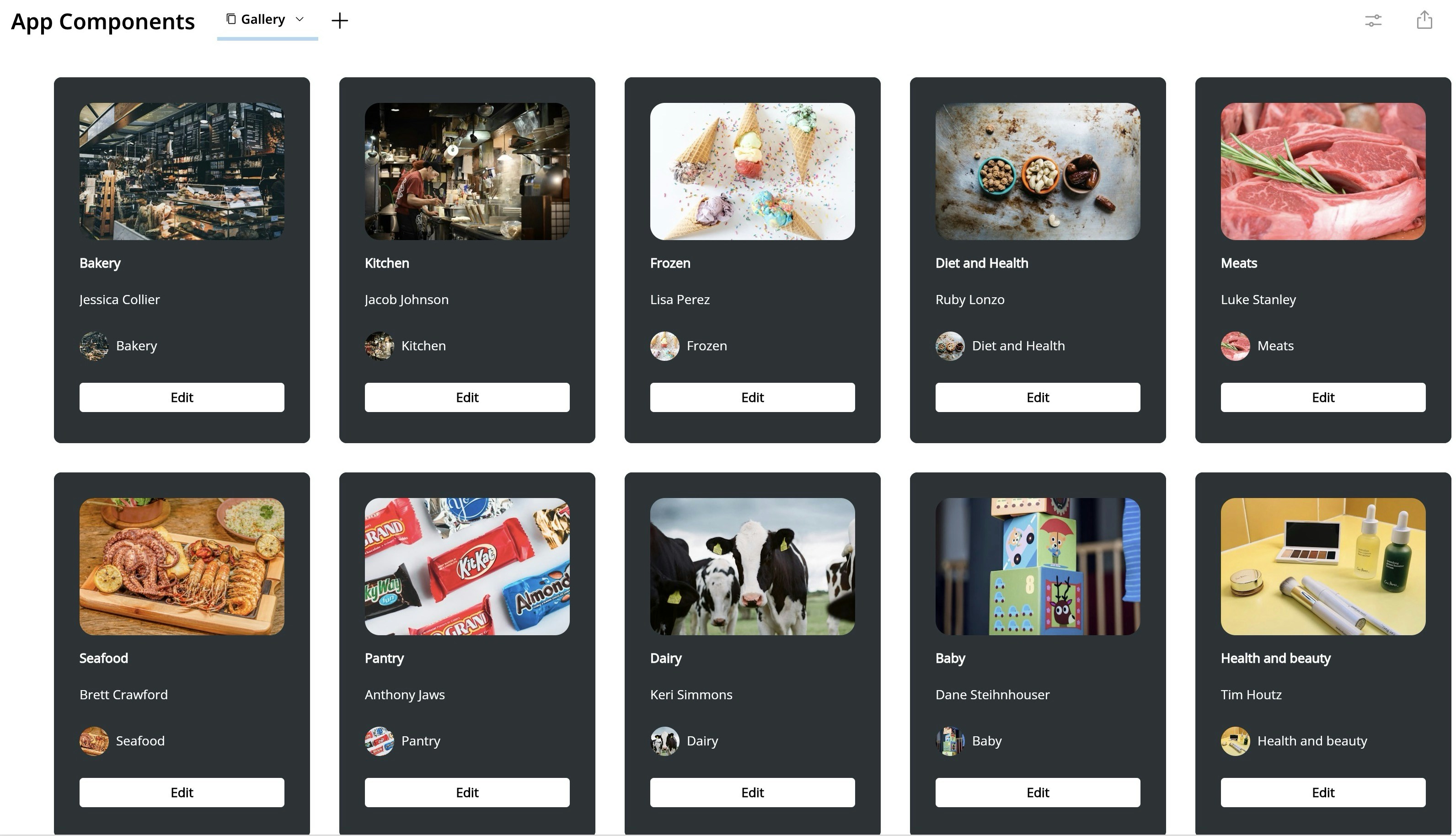 - Edit your app component’s content, appearance, spacing, and DataSet—or modify its buttons, banners, and text type.