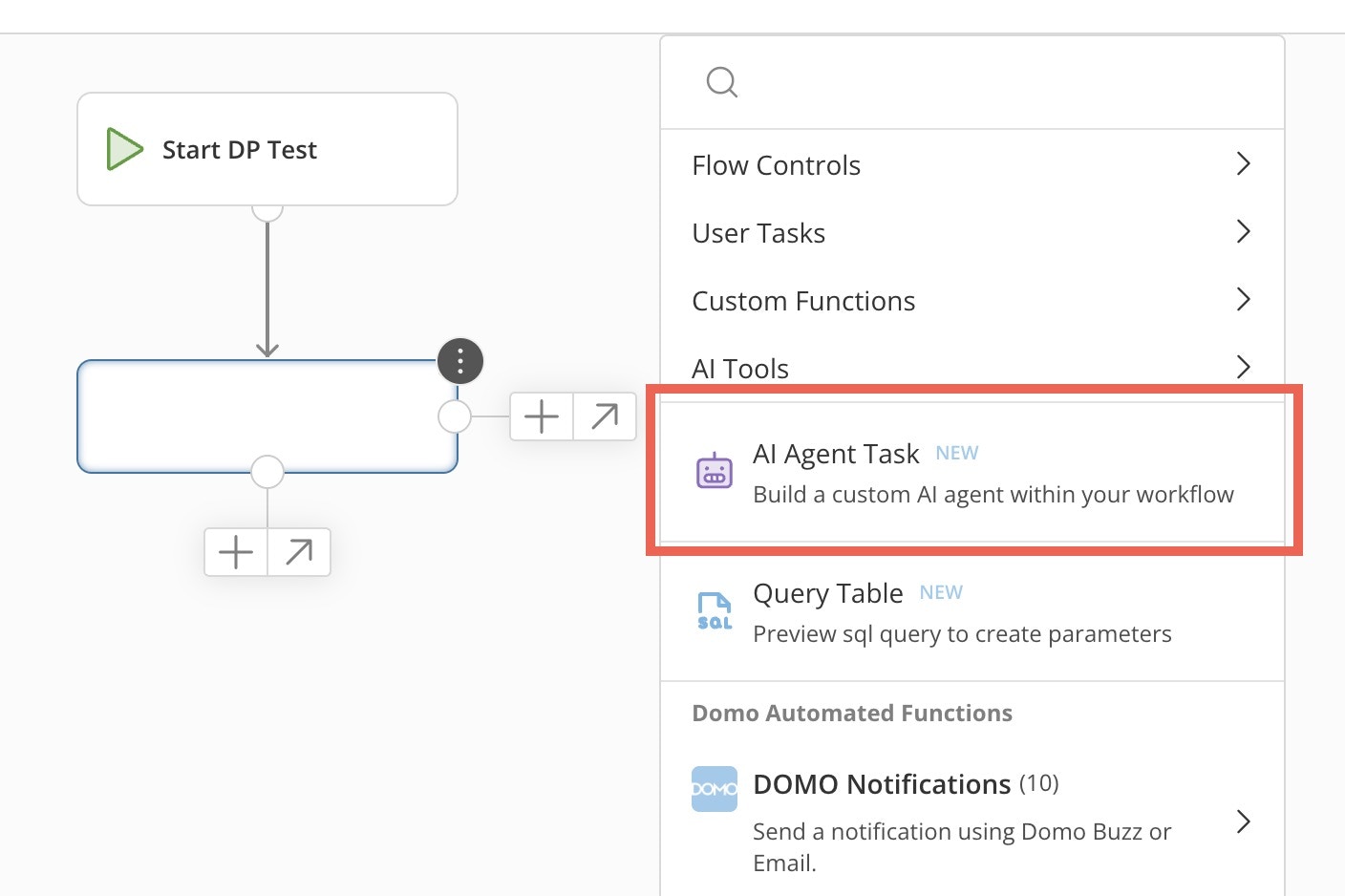 AI Agent Tasks in Workflows bring intelligent automation directly into your business processes.What is an AI Agent?AI Agents can perform tasks on behalf of a person or system by using tools, data, and workflows. When an AI Agent is embedded directly into a workflow step, it can analyze inputs, make context-aware decisions, and execute actions to reduce manual effort and increase operational efficiency. Employing Domo global and custom functions enables your agent to go beyond thinking and actually do.