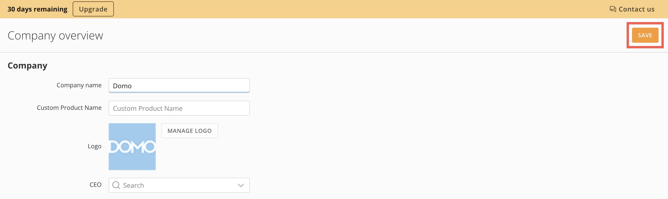 - Save your changes using the Save option on the Company overview page.