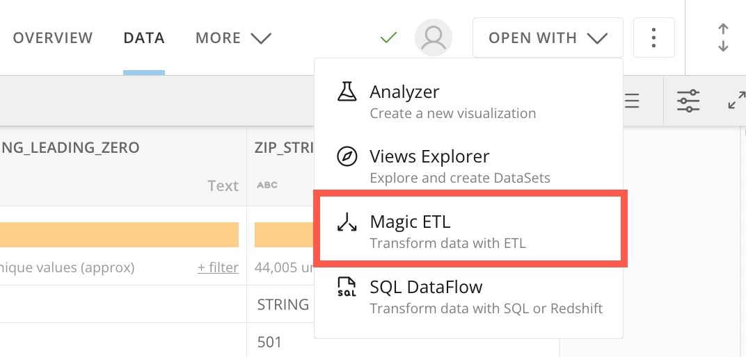 - From the Zips to Fips data, select Open With > Magic ETL.