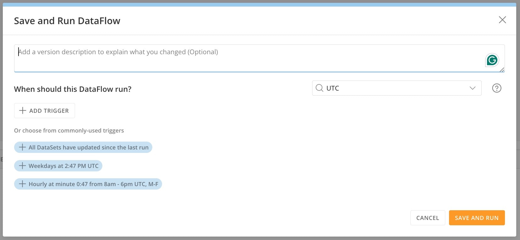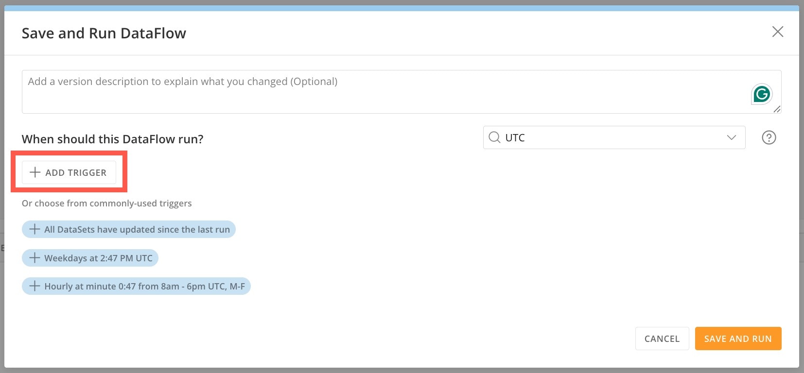 - (Optional) To add a trigger that will execute your DataFlow, select Add Trigger.