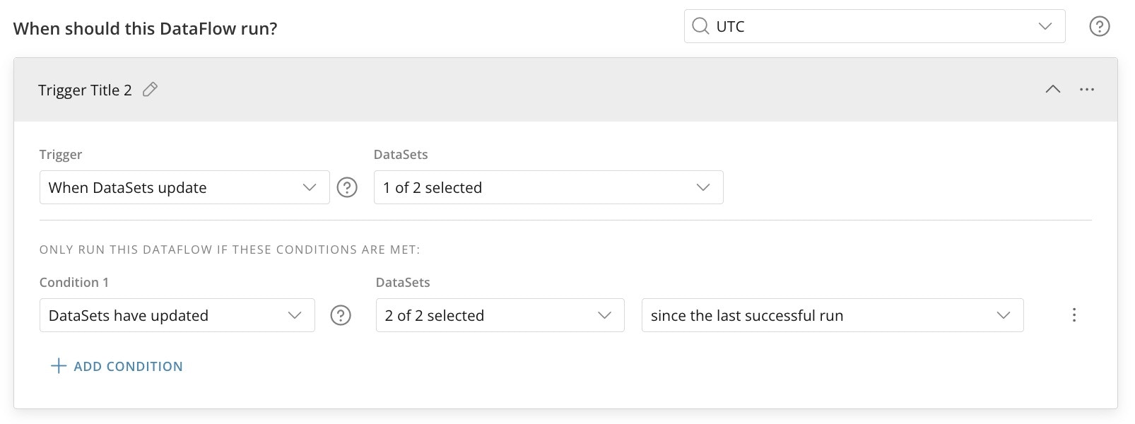 - Choose the trigger condition and select to which of the available DataSets the trigger should apply.