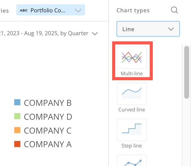 - In the Chart types panel on the right side of the screen, use the dropdown to go to Line > Multi-line.