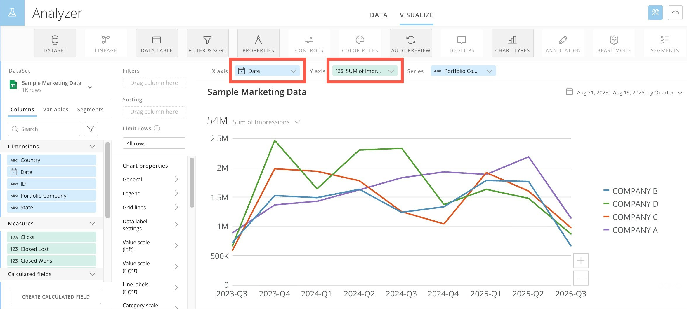 Date and Impression columns are used.