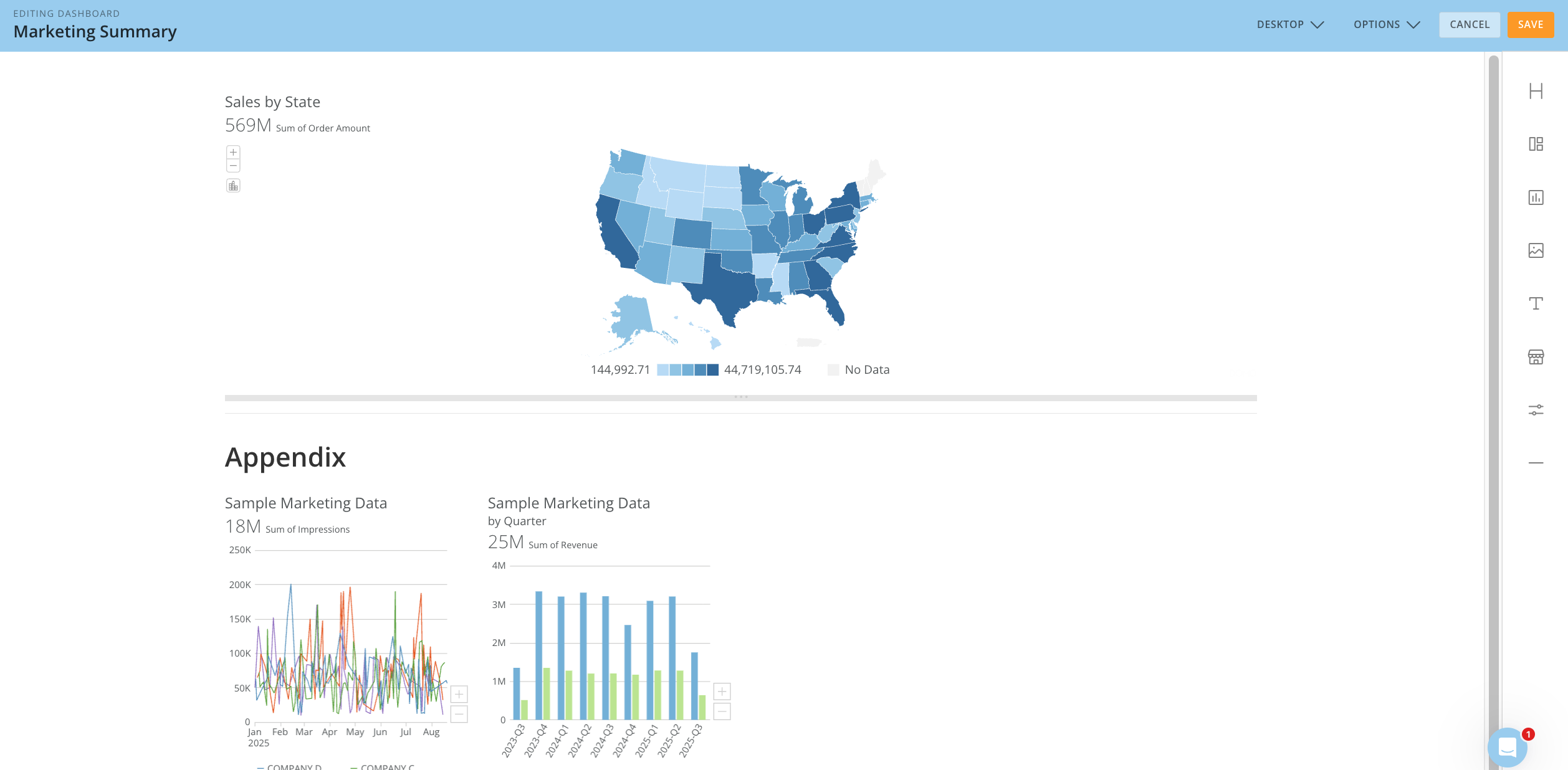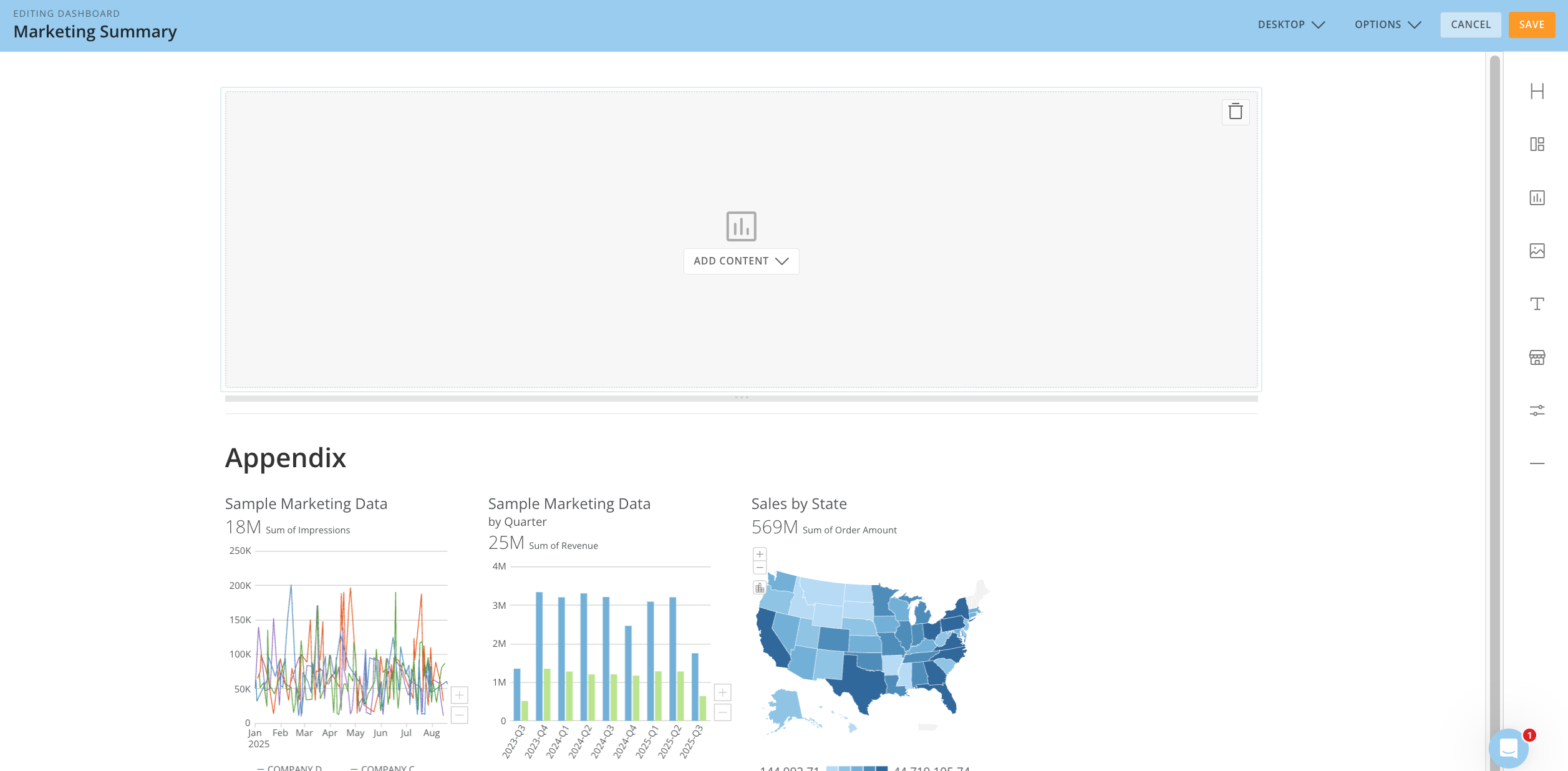 Sales by Statecard to the dashboard area. This adds a content frame.