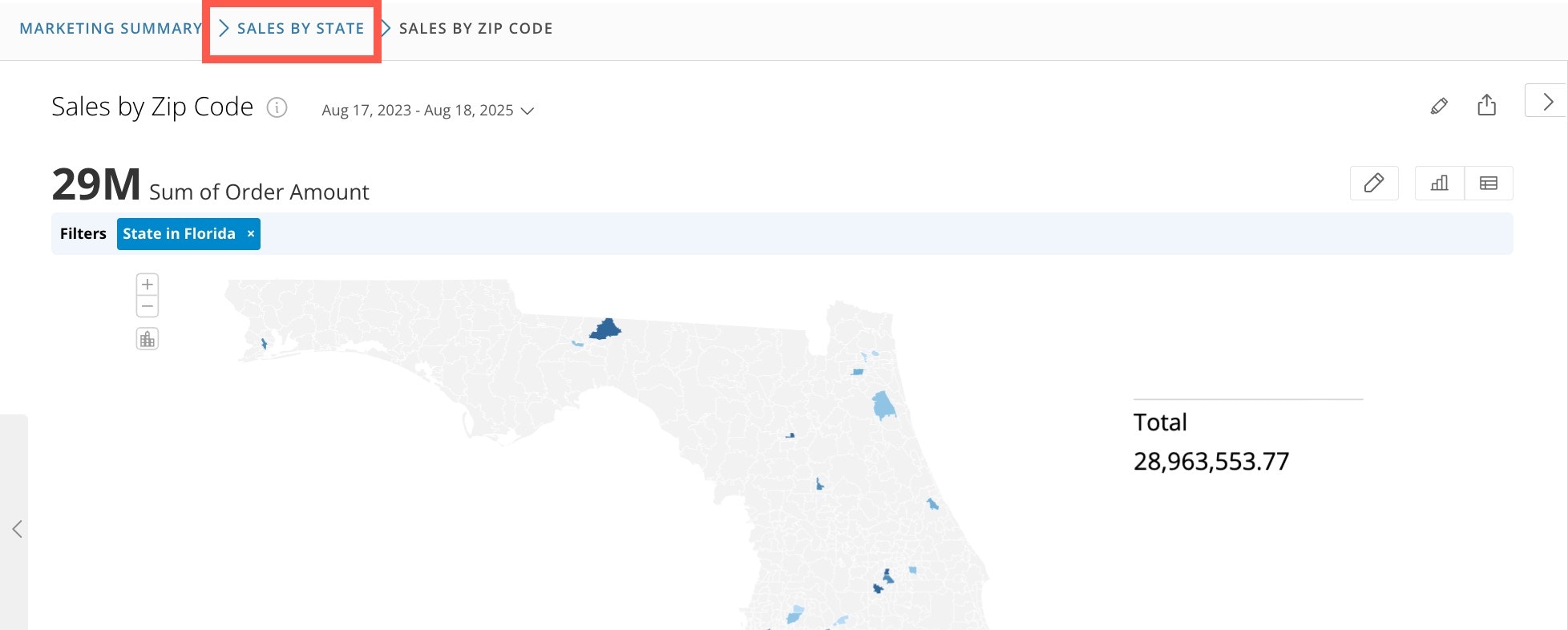Sales by Zip Code,then save and close the card. - From the Drill Path view, return to Details.