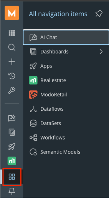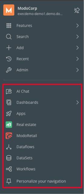 Pin your most-used features, like App Studio or DataFlows, or actions, like uploading a file or opening a card, to your Pinned Items navigation below the main menu.Pin Items