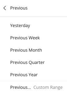 Previous period options are now available in Analyzer, allowing you to filter data by excluding specific time periods like the current day or quarter. “Previous” periods always exclude the current period ( today, current week/month/quarter/year). The “Last” filter option has been moved to the top of the filter list and includes the current period by default. This update is available in the date range dropdown in Analyzer, Dashboards, and App Studio.