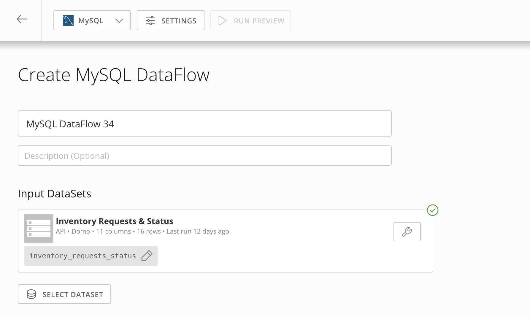 Your DataSet displays in the DataFlow creation screen.