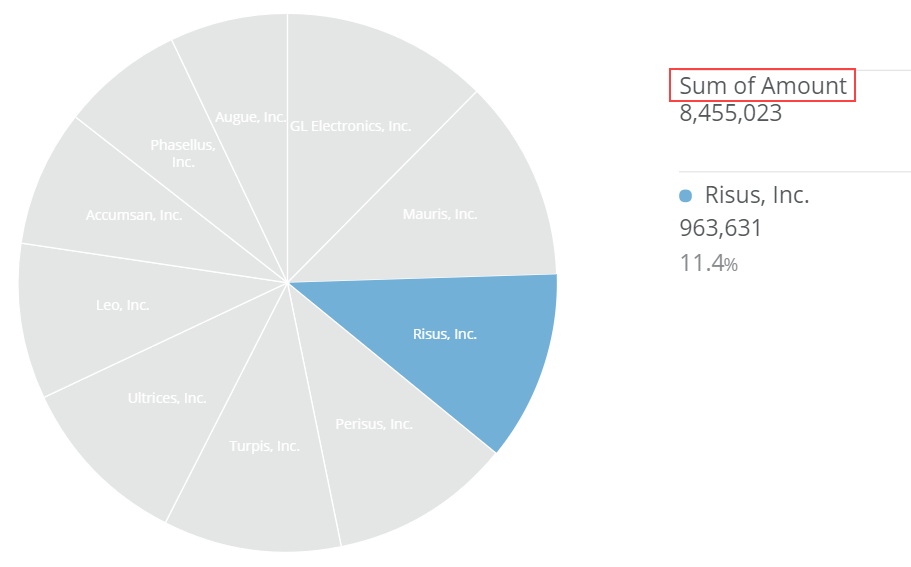 Hover Legend > Title Text | Lets you customize the summary text that appears above your Pie or Donut chart’s hover legend area (which normally reads “Total”). The example shows a Pie chart in which this text has been customized to read “Sum of Amount.” | |