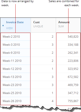 - Because aggregations are applied automatically in Pivot View, those aggregations persist when you go back to Column View.