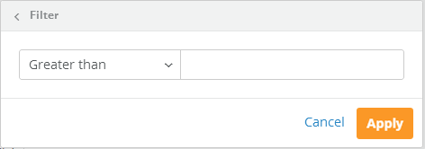 - Enter the desired amount in the field. For example, if you wanted the table to show only data greater than $50,000, you would select is less than from the menu then enter “50,000” in the field.