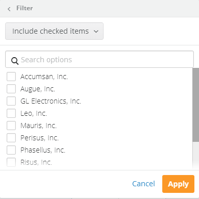 - Specify whether the items you have checked appear or do not appear in your chart by selecting Include checked items or Exclude checked items from the menu at the top of the dialog.