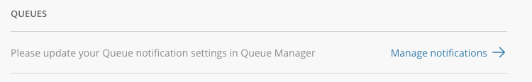 You can manage your Queue notification settings in the Queue Manager by selecting Manage Notifications.