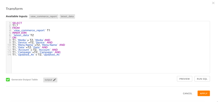 Create a new table of the latest data called “latest_data” from the source DataSet.