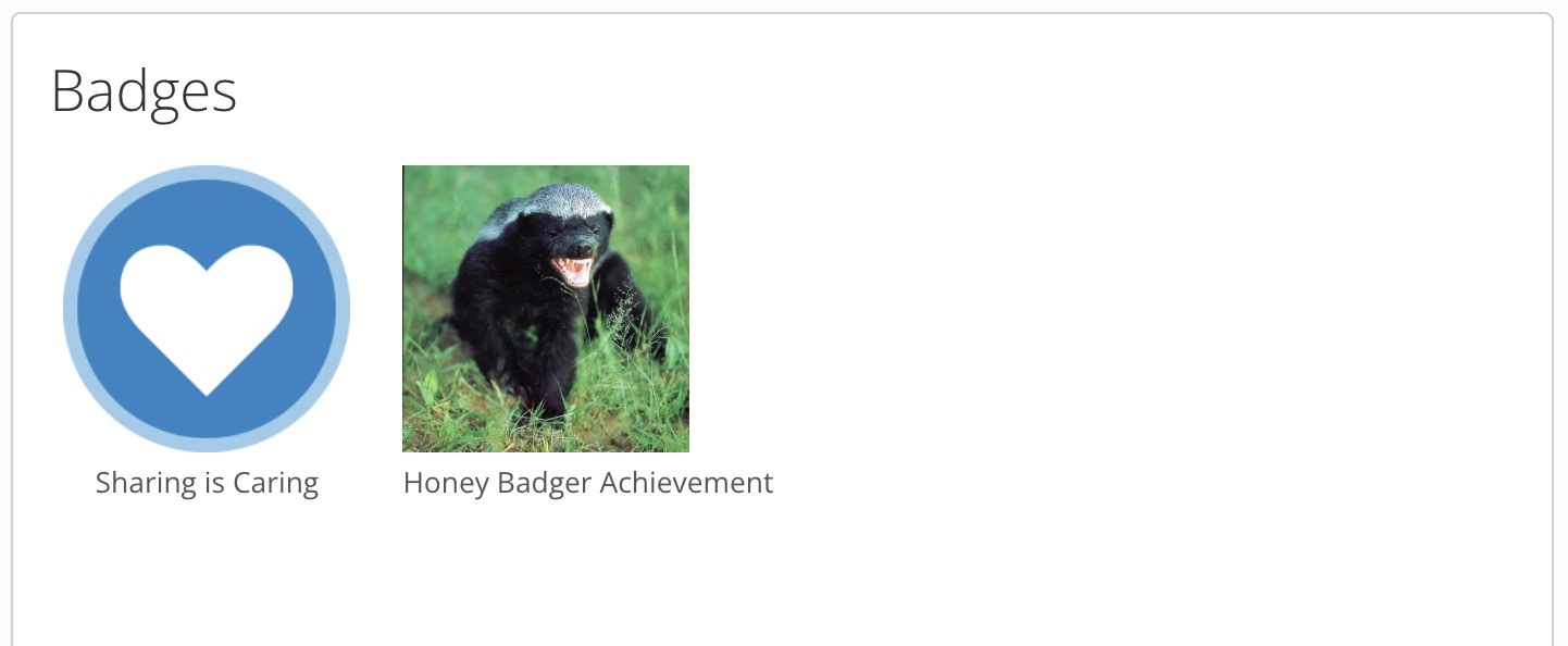 Under Badges, you can see the badges awarded to the user. Selecting a badge displays more details about it.