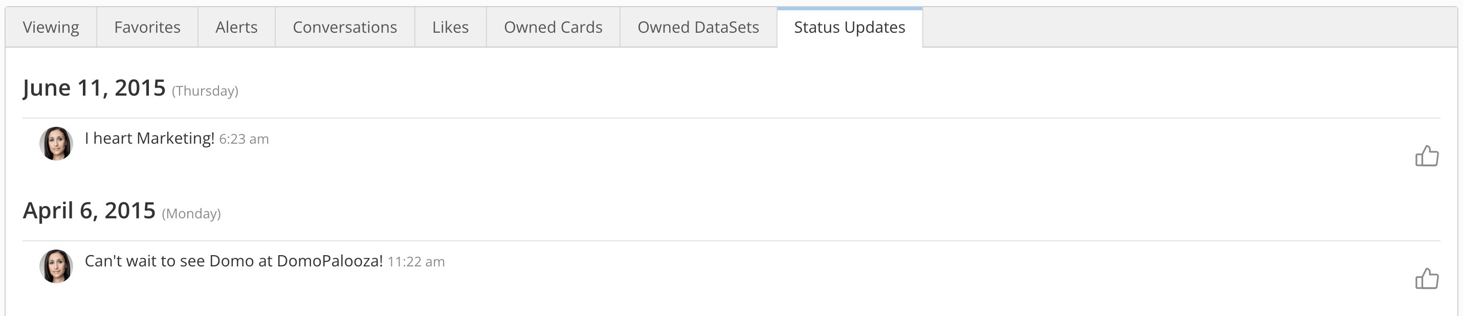 Status updates in Domo allow you to tell other users in your organization what you are working on.Enter a Status Update