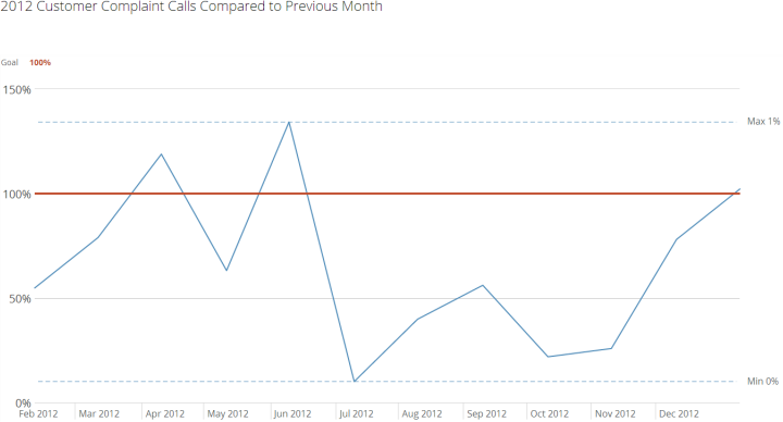 Part-to-Whole | Used to measure a single value against a whole. | Vertical or horizontal Percent of Total graph. Pie graphs may also be used but are generally less effective at presenting data. | |