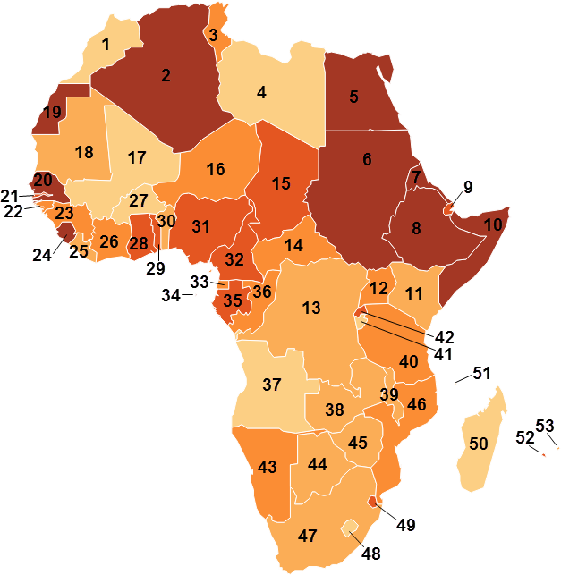You may reference African nations using their full names or their two-letter ISO-3166 codes.