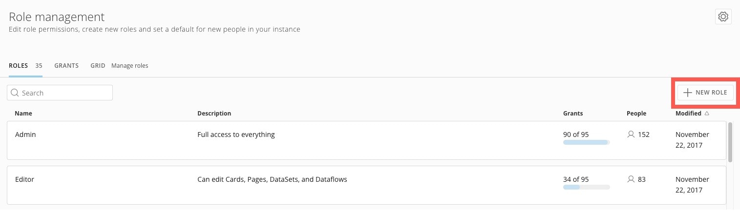 To manage roles and grants, including creating, editing, and deleting roles, assigning roles to users, and configuring Role Settings, you must have an Admin system role or a custom role with the Manage All Roles grant enabled.Note: Users with the Assign Users to a Role grant can assign roles included in the Roles Allowlist, but can’t perform other role-related actions.