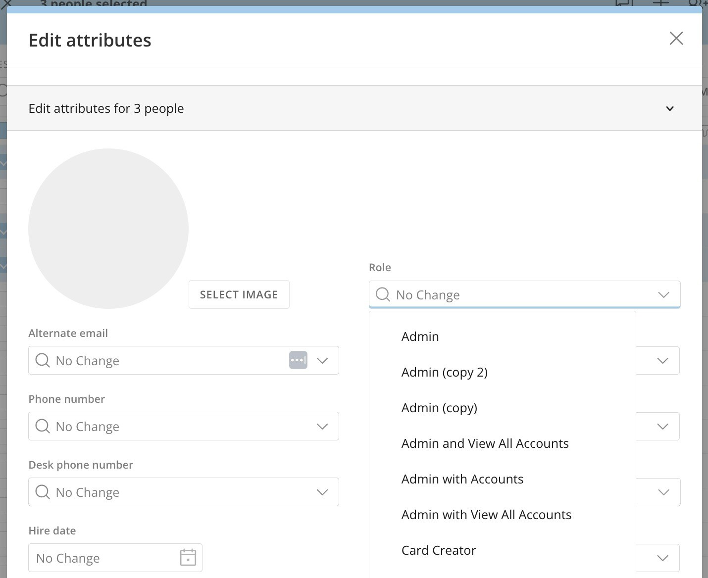 Update user attributes (pencil icon)in the banner, and use the modal to choose a new user role to apply to each selected person.