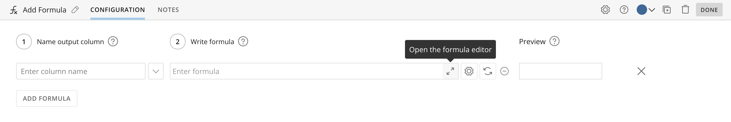 Quickly validates the formula’s syntax and checks for errors without running a preview of the entire DataFlow.