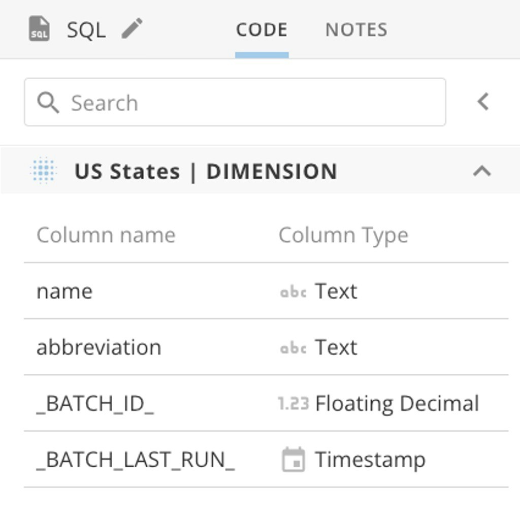 The Get Schema tile generates a table with schema information for the input table that can be modified and consumed by the Meta Select tile. Learn how to use the Meta Select and Get Schema tiles together.Limit Tile (Beta)