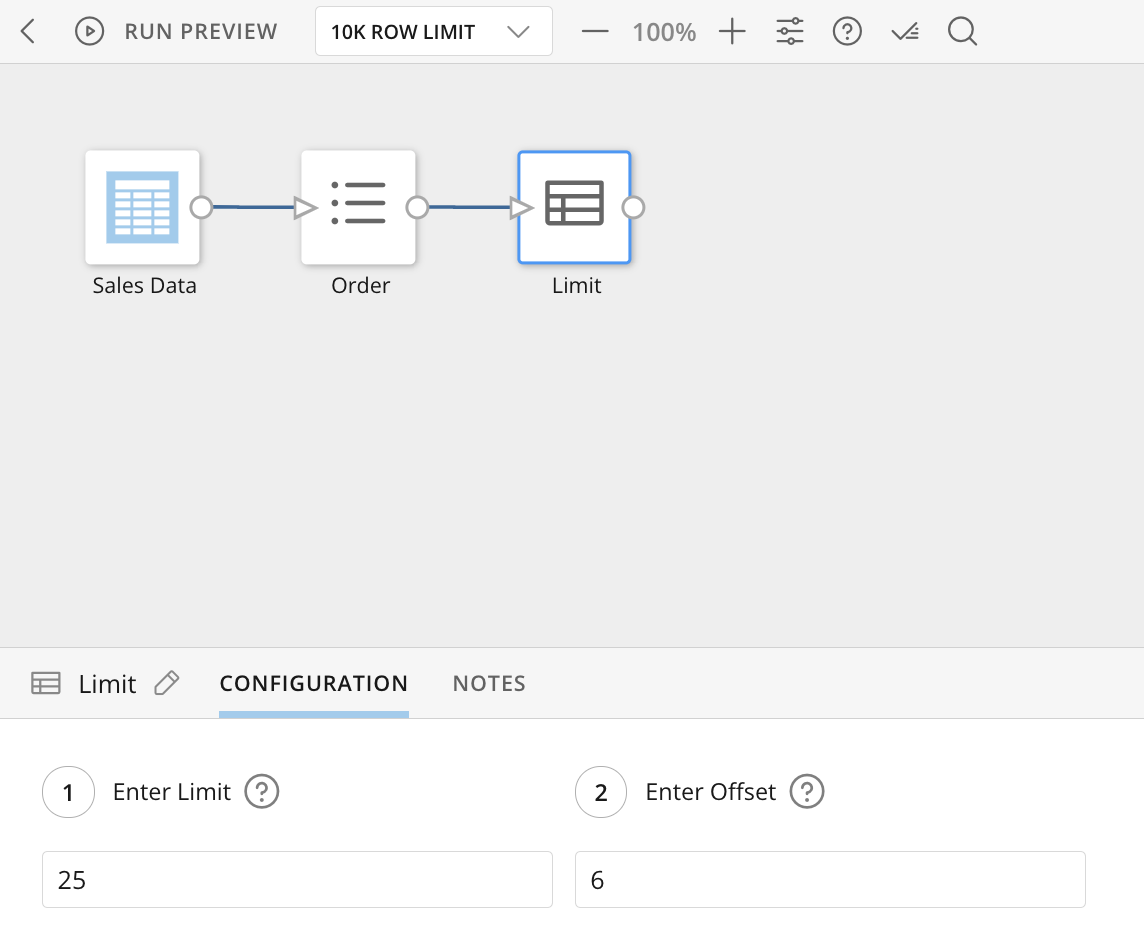 - Enter the zero-based row index for the limit to start on—the offset. If you want the included rows to begin at row 1, leave this blank.