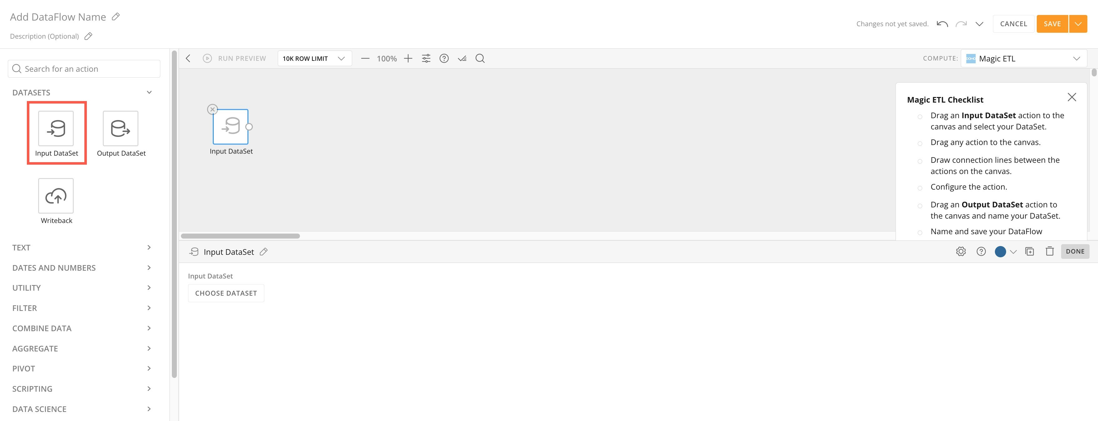 - Add an input DataSet to a DataFlow