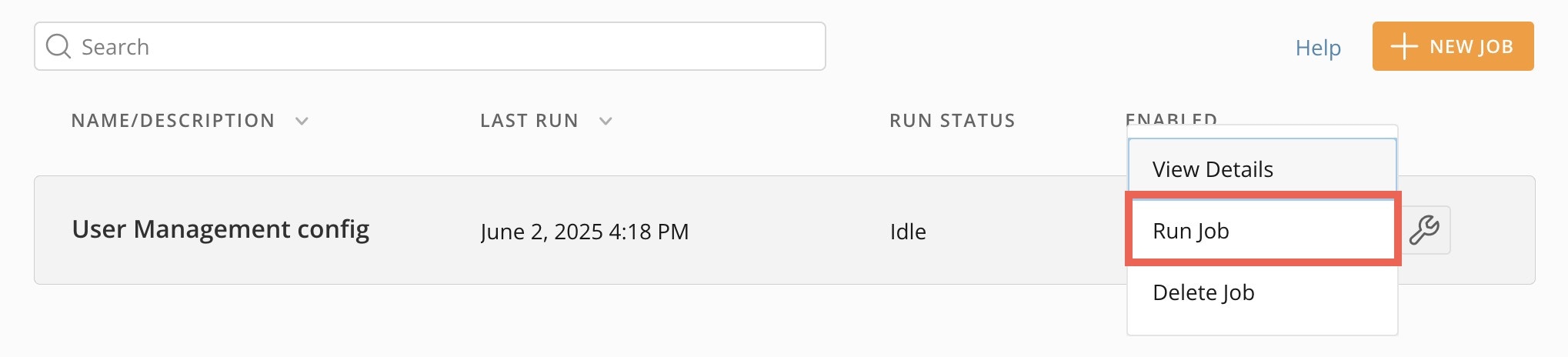 - Access User Management and navigate to your existing job.