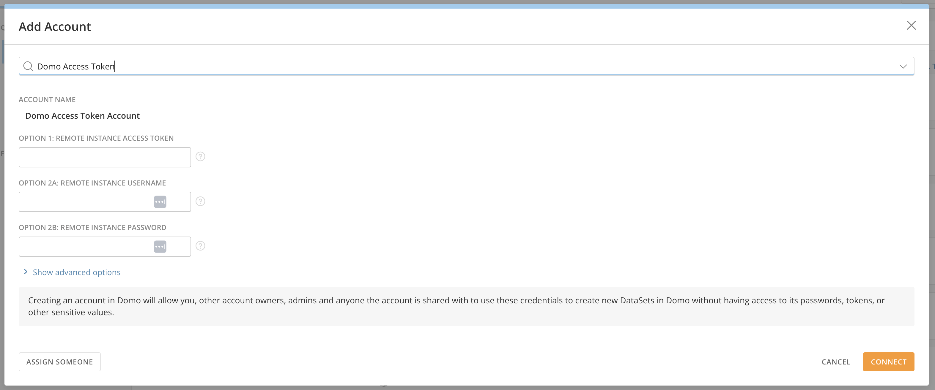 Configure a Domo Access Token Account