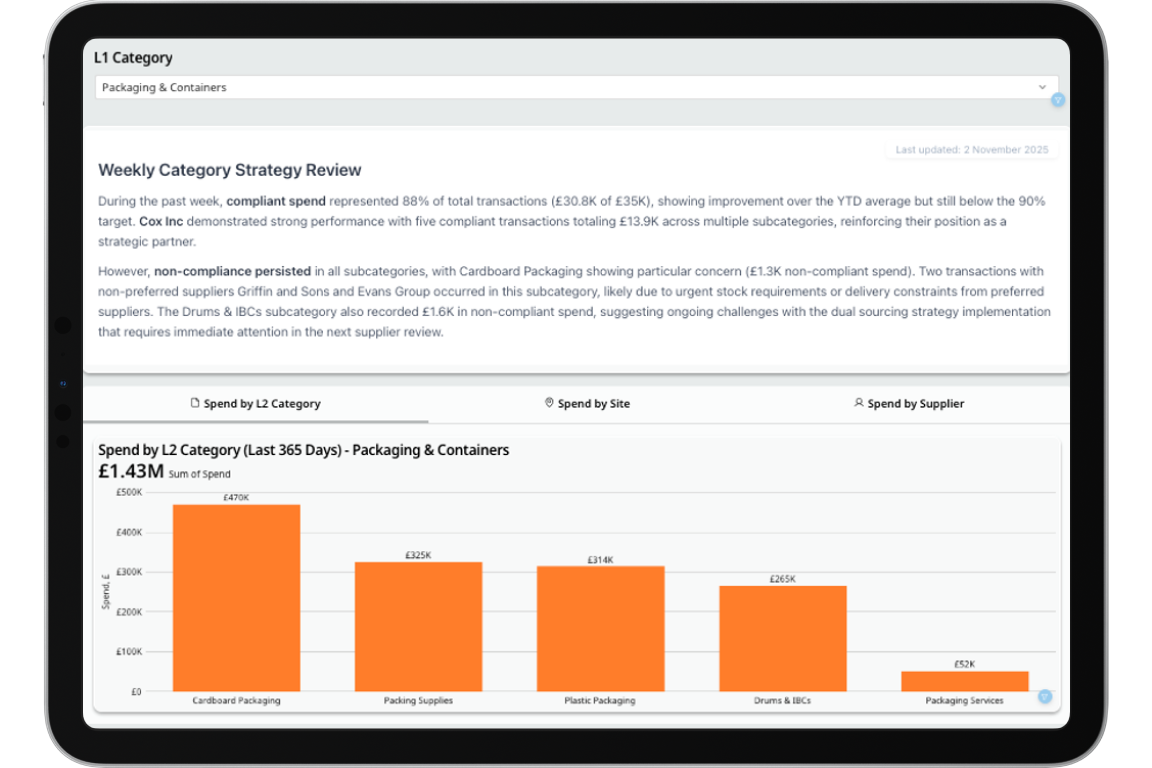 Bring clarity to spend, set clear category direction, and turn insight into consistent action across the business, as procurement responsibilities continue to grow.