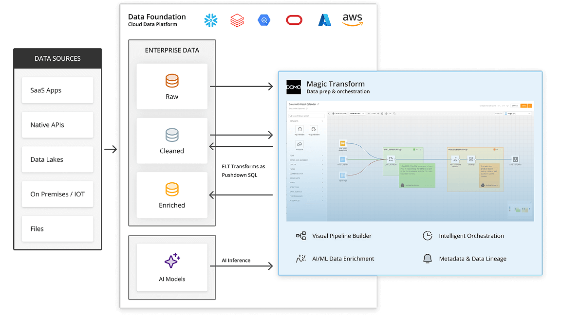Absolutely. Domo is designed for both accessibility and power. While Magic ETL handles most use cases with no-code, your data professionals have full access to SQL, Python, and R scripting within MagicETL as well. They can write custom, high-performance transformations and embed them directly into data pipelines, ensuring maximum flexibility for your most complex challenges.