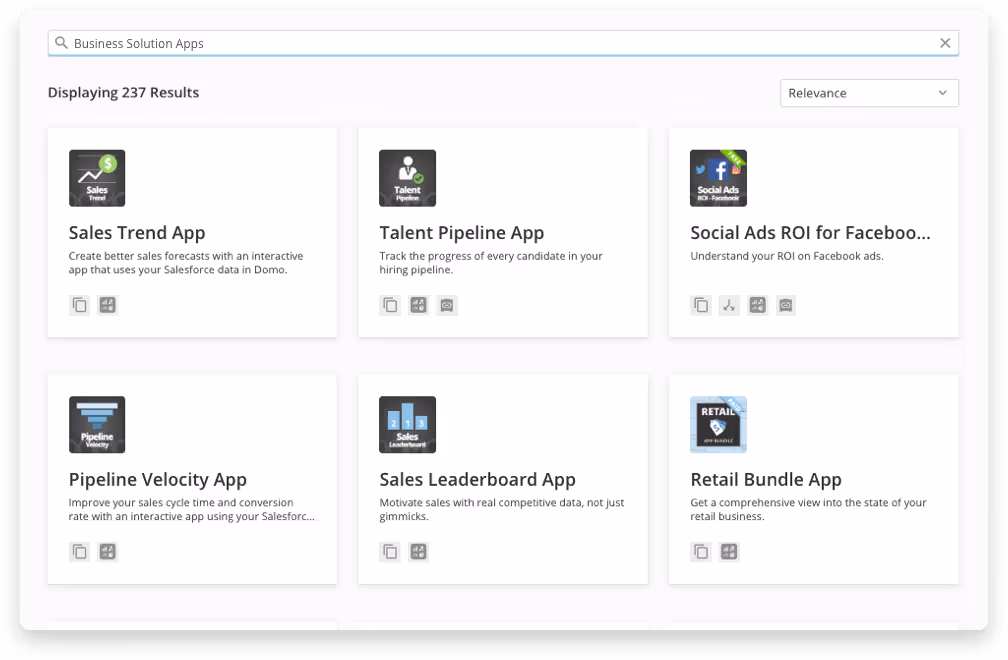 With Domo’s ecosystem of pre-built apps, you can find or create solutions that answer specific questions for your role, industry, or task.