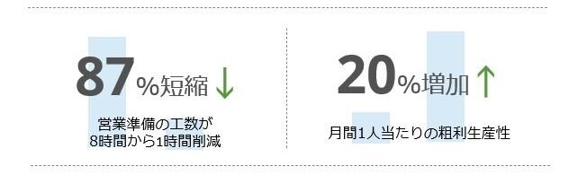- データ収集の効率化:営業準備の工数が8分の1に削減