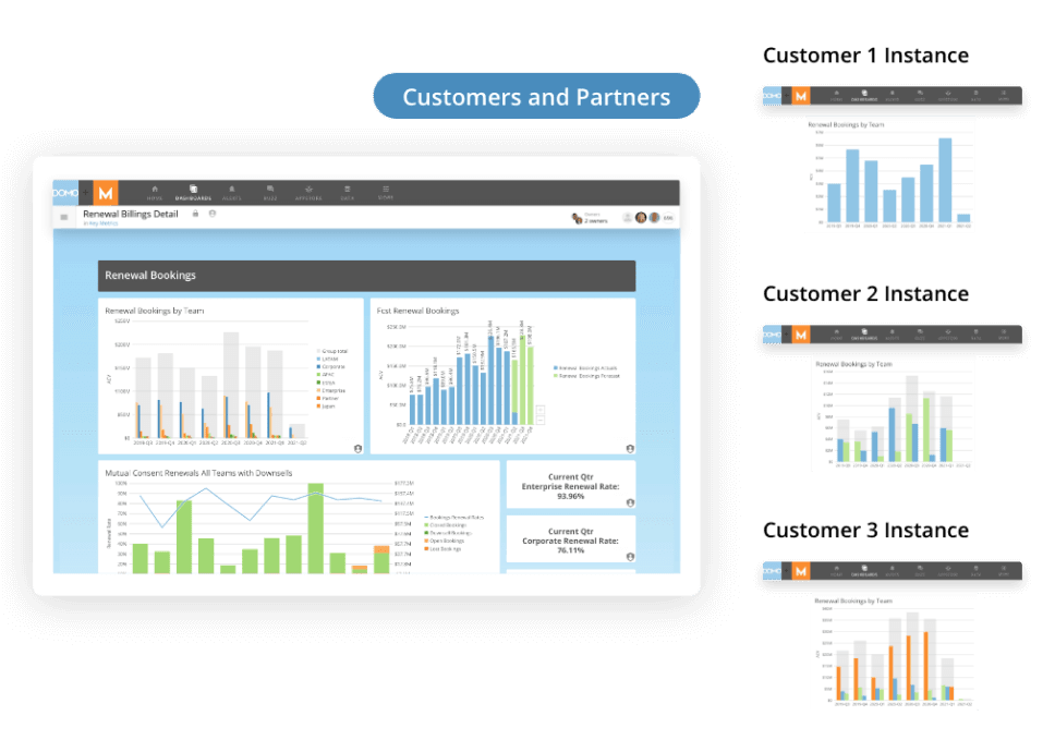 Domo Everywhere is about more than just sharing data; it involves building an ecosystem where partners can connect and centralize shared data, explore it together to gain valuable insights, and build joint solutions that create value for all.