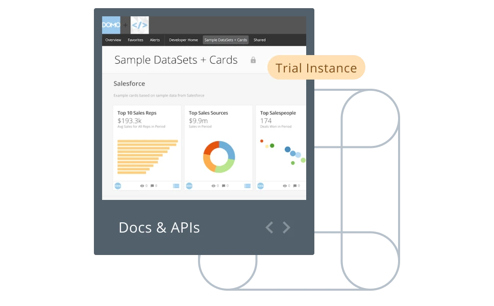 Find developer resources, including tools for authentications, SDKs, API references, and tools for building APIs and apps on the Domo platform.