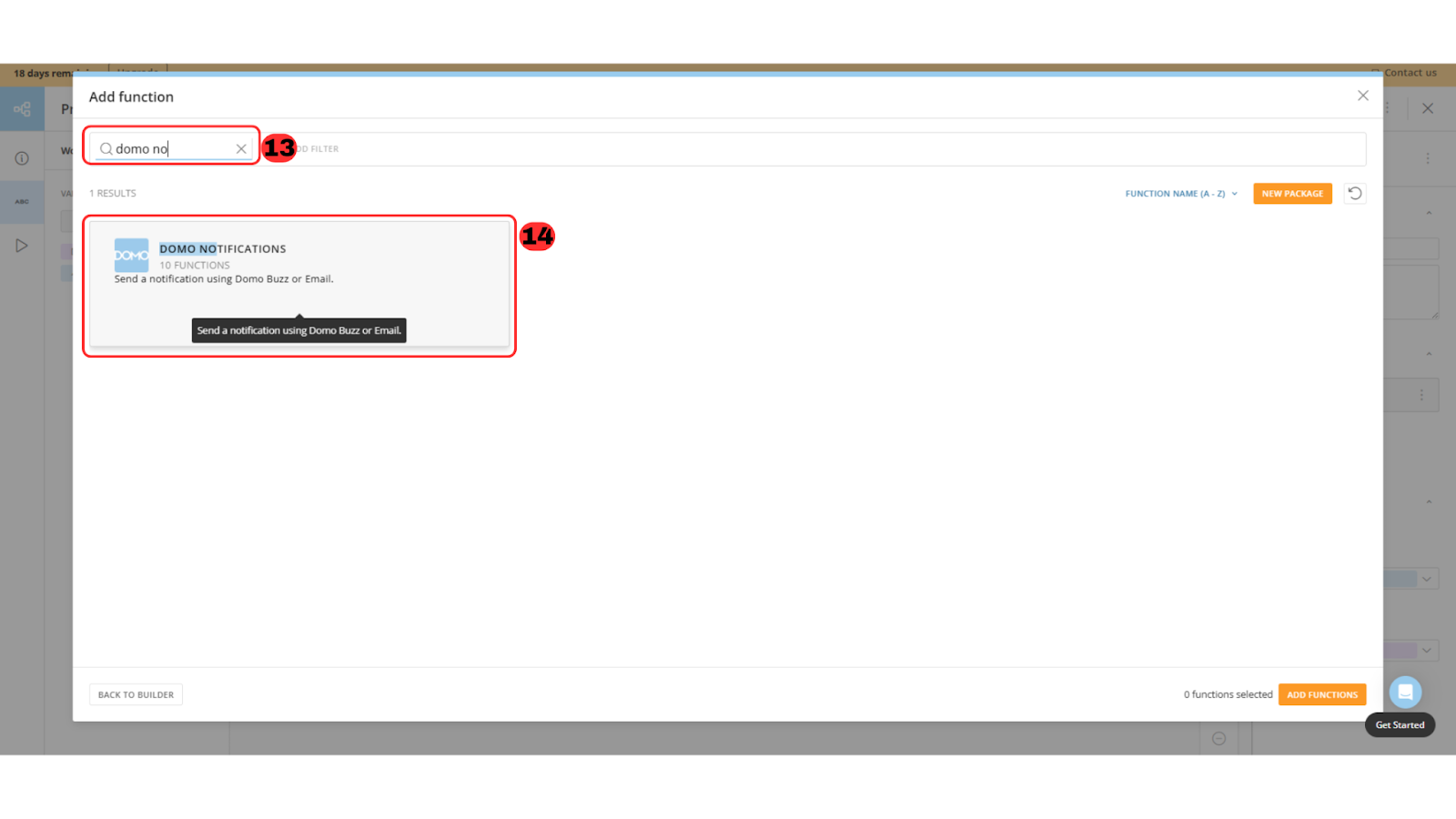 - 「Domo notifications パッケージ」を検索します(⑬)。